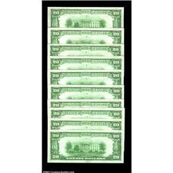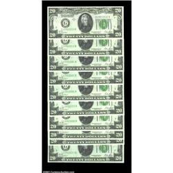 Fr. 2052-G $20 1928B Federal Reserve Notes. Gem Crisp Uncirculated.A lovely consecutive run of ten p
