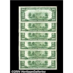 Fr. 2052-G $20 1928B Federal Reserve Notes. Cut Half Sheet of Six. Gem Crisp Uncirculated.A crackling fresh and unusually well centered cut half sheet of six pieces, not a common item to find in this early series. 6 notes <BR><BR><B>Important notice:</B> Heritage usually auctions material at the rate of 200-250 lots per hour. On some occasions eBay Live bid software or the Internet may not be able to keep up with the pace of the auction. We recommend placing a realistic absentee bid now as insurance to avoid disappointment. Occasionally the auctioneer may eliminate or reject an eBay Live bid, and the auctioneer may also reopen a lot after the close of the eBay live bidding (usually because we missed an audience bid), and may reject your bid even if it shows you as the winning bidder. By bidding via eBay Live, you agree that Heritage may award the lot to another bidder at its sole discretion under the circumstances described above or any other reasonable circumstances. Since eBay bids are not shown to us until we open the lot on the floor, we treat those bids just like floor bids. In most cases the floor responds before the eBay bid is presented to us, due to Internet lag time, so for consistency we have made it a policy that floor bids are always considered first over tie eBay live bids. Also please note that all Heritage lots purchased through eBay Live carry a 20% Buyer's Premium. Please make sure you read the Terms and Conditions before you bid. <BR><BR><B>IMPORTANT ANNOUNCEMENT ABOUT RESERVES:</B> Heritage now divulges all reserves on its web site 7 days before every auction. If you want to know whether the reserve on this lot has been met, and if not, what the reserve amount is, please visit this lot page on the HeritageCoin.com web site, or email: bid@HeritageGalleries.com