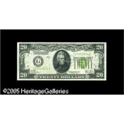<B>Fr. 2053-G $20 1928C Federal Reserve Note. Very Fine-Extremely Fine.</B></I><BR>This series was issued by only the Chicago and San Francisco districts, and our consignor tried to obtain any mid to high grade examples he ran across. This is a bright and well centered example which would fit nicely into any high grade set. Lot:16099