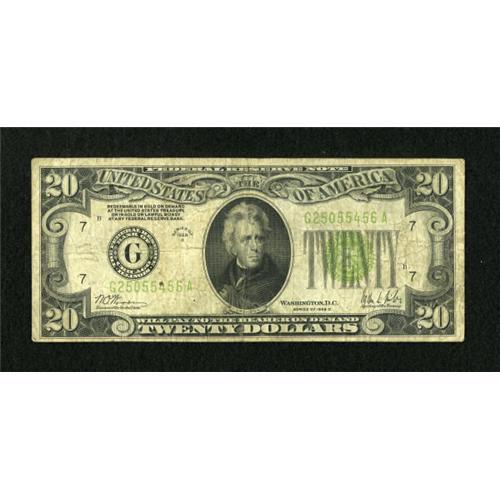 <B>Fr. 2053-G $20 1928C Federal Reserve Note. Fine.</B></I><BR> A pleasing example from this scarce issue that has good margins and which is totally problem free but for a small margin tear and a lightly penciled number at left.<BR><BR><b>Shipping:</b> Coins & Currency (<a target="_blank" href="http://www.heritageauctions.com/common/shipping.php">view shipping information</a>)
