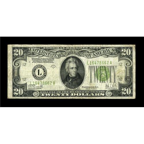 Fr. 2053-L $20 1928C Federal Reserve Note. Fine.This to