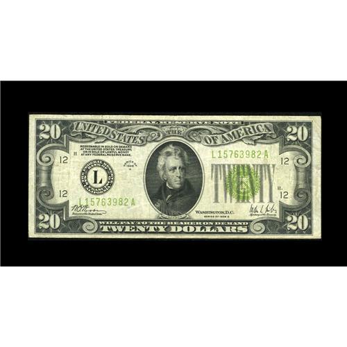 Fr. 2053-L $20 1928C Federal Reserve Note. Fine-Very Fi Fr. 2053-L $20 1928C Federal Reserve Note. F