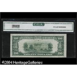 Fr. 2053-L $20 1928C Federal Reserve Note. Very Good.A <B>Fr. 2053-L $20 1928C Federal Reserve Note. CGA Extremely Fine 45.</B></I><BR>A scarce denomination and series and an even scarcer district. This issue is seldom encountered in any grade higher than Very Fine. We expect that there will be spirited bidding and again draw all attendees attention to the cautionary admonition contained in our description of the Chicago note in this denomination from this series. <BR><BR><B>Important notice:</B> Heritage usually auctions material at the rate of 200-250 lots per hour. On some occasions eBay Live bid software or the Internet may not be able to keep up with the pace of the auction. We recommend placing a realistic absentee bid now as insurance to avoid disappointment. Occasionally the auctioneer may eliminate or reject an eBay Live bid, and the auctioneer may also reopen a lot after the close of the eBay live bidding (usually because we missed an audience bid), and may reject your bid even if it shows you as the winning bidder. By bidding via eBay Live, you agree that Heritage may award the lot to another bidder at its sole discretion under the circumstances described above or any other reasonable circumstances. Since eBay bids are not shown to us until we open the lot on the floor, we treat those bids just like floor bids. In most cases the floor responds before the eBay bid is presented to us, due to Internet lag time, so for consistency we have made it a policy that floor bids are always considered first over tie eBay live bids. Also please note that all Heritage lots purchased through eBay Live carry a 20% Buyer's Premium. Please make sure you read the Terms and Conditions before you bid. This lot is being auctioned in conjunction with a live floor auction by Heritage Galleries & Auctioneers. All final auction and invoice information will be supplied by Heritage Galleries & Auctioneers, and all other information should be considered preliminary. Lot:16380