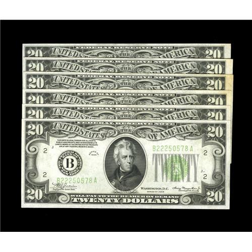 Fr. 2054-B $20 1934 Federal Reserve Note.. Fr. 2054-B $20 1934 Federal Reserve Notes. Six Consecutiv