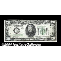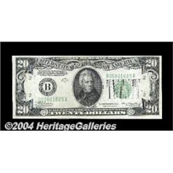 Fr. 2055-B $20 1934-A Federal Reserve Notes. Three Consecutive Examples. Choice Crisp Uncirculated.This trio has embossing and good color. 3 notes <BR><BR><B>Important notice:</B> Heritage usually auctions material at the rate of 200-250 lots per hour. On some occasions eBay Live bid software or the Internet may not be able to keep up with the pace of the auction. We recommend placing a realistic absentee bid now as insurance to avoid disappointment. Occasionally the auctioneer may eliminate or reject an eBay Live bid, and the auctioneer may also reopen a lot after the close of the eBay live bidding (usually because we missed an audience bid), and may reject your bid even if it shows you as the winning bidder. By bidding via eBay Live, you agree that Heritage may award the lot to another bidder at its sole discretion under the circumstances described above or any other reasonable circumstances. Since eBay bids are not shown to us until we open the lot on the floor, we treat those bids just like floor bids. In most cases the floor responds before the eBay bid is presented to us, due to Internet lag time, so for consistency we have made it a policy that floor bids are always considered first over tie eBay live bids. Also please note that all Heritage lots purchased through eBay Live carry a 20% Buyer's Premium. Please make sure you read the Terms and Conditions before you bid. <BR><BR><B>IMPORTANT ANNOUNCEMENT ABOUT RESERVES:</B> Heritage now divulges all reserves on its web site 7 days before every auction. If you want to know whether the reserve on this lot has been met, and if not, what the reserve amount is, please visit this lot page on the HeritageCoin.com web site, or email: bid@HeritageGalleries.com