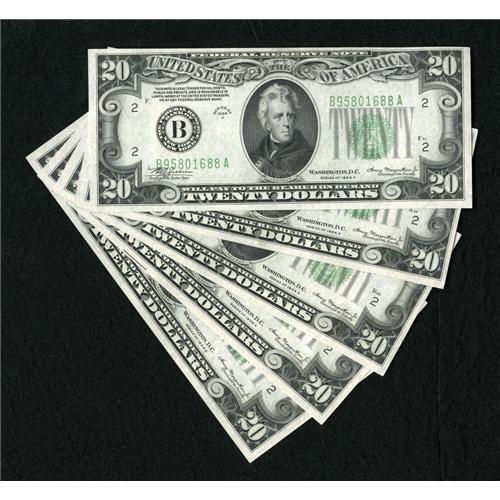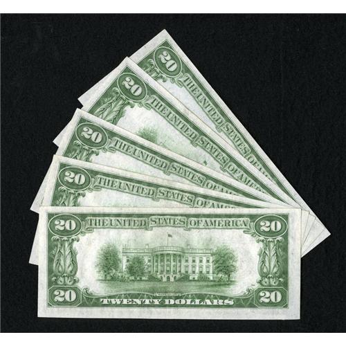 Fr. 2055-B Five Consecutive $20 1934A Federal Re