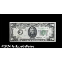 <B>Fr. 2056-G $20 1934B Inverted Reverse Federal Reserve Note Extremely Fine-About Uncirculated.</B></I> A tougher denomination for inverts, especially in these earlier series notes. Lot:15064