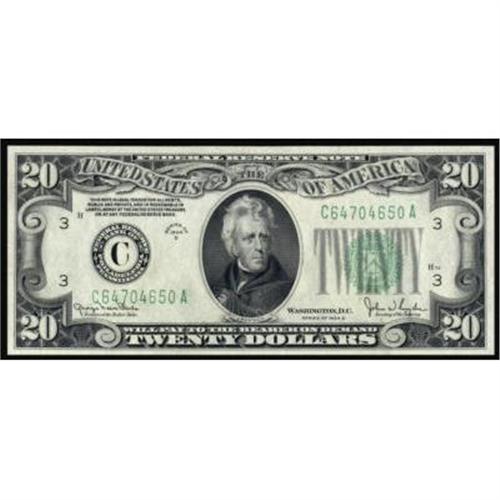 Fr. 2058-C. 1934D $20 Federal Reserve Note. Wide. PMG Superb Gem Uncirculated 67EPQ.