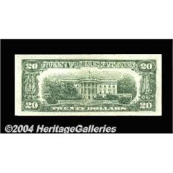 Fr. 2059-E* $20 1950 Federal Reserve Note. Choice Crisp Uncirculated.A very scarce star which catalogues in Oakes for $500 in CU. <BR><BR><B>Important notice:</B> Heritage usually auctions material at the rate of 200-250 lots per hour. On some occasions eBay Live bid software or the Internet may not be able to keep up with the pace of the auction. We recommend placing a realistic absentee bid now as insurance to avoid disappointment. Occasionally the auctioneer may eliminate or reject an eBay Live bid, and the auctioneer may also reopen a lot after the close of the eBay live bidding (usually because we missed an audience bid), and may reject your bid even if it shows you as the winning bidder. By bidding via eBay Live, you agree that Heritage may award the lot to another bidder at its sole discretion under the circumstances described above or any other reasonable circumstances. Since eBay bids are not shown to us until we open the lot on the floor, we treat those bids just like floor bids. In most cases the floor responds before the eBay bid is presented to us, due to Internet lag time, so for consistency we have made it a policy that floor bids are always considered first over tie eBay live bids. Also please note that all Heritage lots purchased through eBay Live carry a 20% Buyer's Premium. Please make sure you read the Terms and Conditions before you bid. <BR><BR><B>IMPORTANT ANNOUNCEMENT ABOUT RESERVES:</B> Heritage now divulges all reserves on its web site 7 days before every auction. If you want to know whether the reserve on this lot has been met, and if not, what the reserve amount is, please visit this lot page on the HeritageCoin.com web site, or email: bid@HeritageGalleries.com