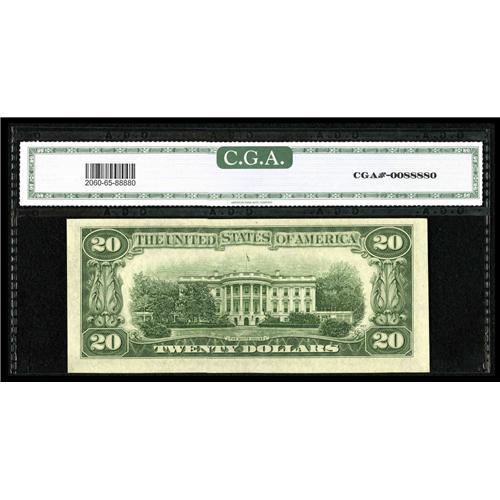 Fr. 2060-D $20 1950A Federal Reserve Note. CGA Gem Unci Fr. 2060-D $20 1950A Federal Reserve Note. C