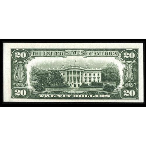 <B>Fr. 2060-I* $20 1950A Federal Reserve Note. Choice Crisp Uncirculated.</B></I><BR>Eggshell paper is noted on this exceptional piece with only a minor centering issue.