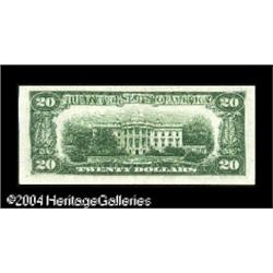 Fr. 2060-J* $20 1950A Federal Reserve Note. Very Choi <B>Fr. 2060-J* $20 1950A Federal Reserve Note. Very Choice Crisp Uncirculated.</B></I><BR>A scarce Kansas City star Twenty that simply lacks the centering for a higher grade. <BR><BR><B>Important notice:</B> Heritage usually auctions material at the rate of 200-250 lots per hour. On some occasions eBay Live bid software or the Internet may not be able to keep up with the pace of the auction. We recommend placing a realistic absentee bid now as insurance to avoid disappointment. Occasionally the auctioneer may eliminate or reject an eBay Live bid, and the auctioneer may also reopen a lot after the close of the eBay live bidding (usually because we missed an audience bid), and may reject your bid even if it shows you as the winning bidder. By bidding via eBay Live, you agree that Heritage may award the lot to another bidder at its sole discretion under the circumstances described above or any other reasonable circumstances. Since eBay bids are not shown to us until we open the lot on the floor, we treat those bids just like floor bids. In most cases the floor responds before the eBay bid is presented to us, due to Internet lag time, so for consistency we have made it a policy that floor bids are always considered first over tie eBay live bids. Also please note that all Heritage lots purchased through eBay Live carry a 20% Buyer's Premium. Please make sure you read the Terms and Conditions before you bid. This lot is being auctioned in conjunction with a live floor auction by Heritage Galleries & Auctioneers. All final auction and invoice information will be supplied by Heritage Galleries & Auctioneers, and all other information should be considered preliminary. Lot:16390