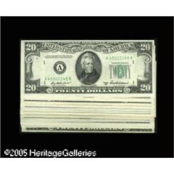 <B>Fr. 2061-A-L (24) $20 1950B Federal Reserve Notes. Complete Regular Block Set. Choice Crisp Uncirculated or Better.</B></I><BR>A few duplicate blocks are contained within this lot that has some notes below the assigned grade. G-B, G-C, H-A, I-A, and J-A all grade AU, while F-B and L-C grade VF and Fine respectively.<BR> 24 notes Lot:16151