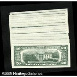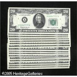 <B>Fr. 2065-A-L $20 1963 Federal Reserve Notes. Seven Examples. About Uncirculated or Better.</B></I><BR>The blocks missing from this District set are FA, GA and JA. All of the examples grade Choice CU save for HA and LA which grade AU.<BR><B>Fr. 2065-A*-L* $20 1963 Federal Reserve Notes. Nine Examples. Choice Crisp Uncirculated or Better.</B></I><BR>This partial district star set is missing only the G*.<BR> 16 notes Lot:16158