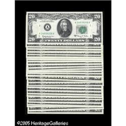 <B>Fr. 2066-A-L $20 1963A Federal Reserve Notes. Fifteen Examples Choice Crisp Uncirculated or Better.</B></I><BR>A near complete block set missing only the BB block. The examples in this set grade Choice CU or Better save for the CA note which grades AU. The DA block note is a RADAR with the serial D60666606A.<BR><B>Fr. 2066-A*-L* $20 1963A Federal Reserve Star Notes. Twelve Examples. Choice Crisp Uncirculated or Better.</B></I><BR>This is a complete District set of Stars that grades Choice CU or better save for the J* which grades AU. These examples have generous margins and wonderful eye appeal.<BR> 27 notes Lot:16159