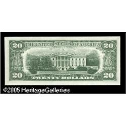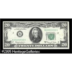 <B>Fr. 2066-B $20 1963A Federal Reserve Note. Choice Crisp Uncirculated.</B></I><BR>Some very trivial handling is present on this otherwise Gem solid serial B22222222A. Lot:16160