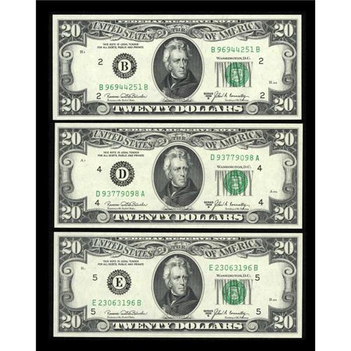 <B>Fr. 2069-B; D; E $20 1969B Federal Reserve Note. Choice Crisp Uncirculated or Better.</B></I><BR> This is a much tougher later series that was only current during parts of 1972 and 1973. <BR><I>From The Thomas M. Flynn Collection</B></I><BR><BR><b>Shipping:</b> Coins & Currency (<a target="_blank" href="http://www.heritageauctions.com/common/shipping.php">view shipping information</a>)