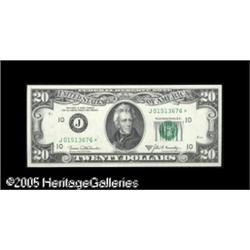 <B>Fr. 2069-F* $20 1969B Federal Reserve Note. Crisp Uncirculated.</B></I><BR>A nice example of this scarce star that had a short run of only 640,000 being printed. A hard to see "as made" paper crinkle keeps this star from the Choice grade.<BR><B>Fr. 2069-J* $20 1969B Federal Reserve Note. Gem Crisp Uncirculated.</B></I><BR>This very tough star note makes the full Gem grade, and with a hairs width better centering, this example would make the superb grade.<BR> 2 notes Lot:16167