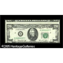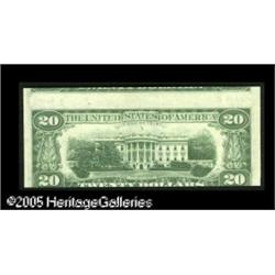 <B>Fr. 2071-B $20 1974 Federal Reserve Note. Choice Crisp Uncirculated.</B></I> A slice of the adjacent above note piggybacks on this miscut $20. Lot:15385