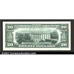 Fr. 2072-E $20 1977 Federal Reserve Note. Gem Crisp Uncirculated. A nice example of inadequate inking on the first face printing.
