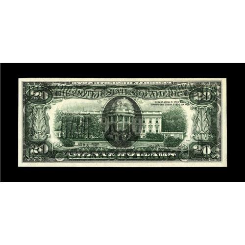 <B>Fr. 2072-H $20 1977 Federal Reserve Note. Gem Crisp Uncirculated.</B></I><BR>A very dark face to back offset is found on this St. Louis $20.<BR><BR><b>Shipping:</b> Coin/Currency (<a target="_blank" href="http://www.heritageauctions.com/common/shipping.php">view shipping information</a>)
