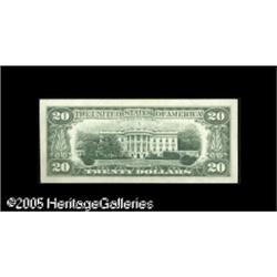 <B>Fr. 2073-E $20 1981 Federal Reserve Note. Gem New.</B></I><BR>The back-to-face offset on this note is inverted as well as very bold, and it also shows sections of four separate backs giving this note an incredibly unusual appearance. As offset errors go, this is one of the very best. Lot:15332