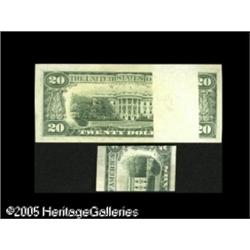 <B>Fr. 2073-J $20 1981 Federal Reserve Note About Uncirculated.</B></I> A neat retained obstruction error with the retained obstruction a strip of currency paper showing a printed section of the reverse. Lot:15457