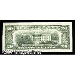 Fr. 2075-B $20 1985 Federal Reserve Note. Gem Crisp U <B>Fr. 2075-B $20 1985 Federal Reserve Note. Gem Crisp Uncirculated.</B></I> Missing the seals and district numbers, likely from an ink-jet printer malfunction, as the embossing is plainly evident. This is a considerably harder to find error than are notes missing the entire third printing. <BR><BR><B>Important notice:</B> Heritage usually auctions material at the rate of 200-250 lots per hour. On some occasions eBay Live bid software or the Internet may not be able to keep up with the pace of the auction. We recommend placing a realistic absentee bid now as insurance to avoid disappointment. Occasionally the auctioneer may eliminate or reject an eBay Live bid, and the auctioneer may also reopen a lot after the close of the eBay live bidding (usually because we missed an audience bid), and may reject your bid even if it shows you as the winning bidder. By bidding via eBay Live, you agree that Heritage may award the lot to another bidder at its sole discretion under the circumstances described above or any other reasonable circumstances. Since eBay bids are not shown to us until we open the lot on the floor, we treat those bids just like floor bids. In most cases the floor responds before the eBay bid is presented to us, due to Internet lag time, so for consistency we have made it a policy that floor bids are always considered first over tie eBay live bids. Also please note that all Heritage lots purchased through eBay Live carry a 20% Buyer's Premium. Please make sure you read the Terms and Conditions before you bid. This lot is being auctioned in conjunction with a live floor auction by Heritage Galleries & Auctioneers. All final auction and invoice information will be supplied by Heritage Galleries & Auctioneers, and all other information should be considered preliminary. Lot:16079