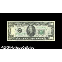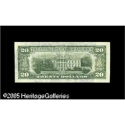<B>Fr. 2075-D $20 1985 Federal Reserve Note. About Uncirculated.</B></I> The paper on which this note is printed fails to conform to standard thickness specifications and is noticeably too thin in the central portions. Lot:15387