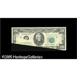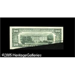 <B>Fr. 2075-E $20 1985 Federal Reserve Note. About New.</B></I><BR>A large folding error across the bottom of the note opens to a sizeable blank area that contains part of the third printing. Lot:15291