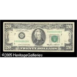 <B>Fr. 2075-G $20 1985 Federal Reserve Note. Abt. Extremely Fine.</B></I><BR>A solid serial G22222222A with plenty of original paper body remaining. Lot:16178
