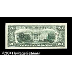 Fr. 2075-L $20 1985 Federal Reserve Note. Gem Crisp U <B>Fr. 2075-L $20 1985 Federal Reserve Note. Gem Crisp Uncirculated.</B></I> A pack fresh example bearing the third printing on the reverse. <BR><BR><B>Important notice:</B> Heritage usually auctions material at the rate of 200-250 lots per hour. On some occasions eBay Live bid software or the Internet may not be able to keep up with the pace of the auction. We recommend placing a realistic absentee bid now as insurance to avoid disappointment. Occasionally the auctioneer may eliminate or reject an eBay Live bid, and the auctioneer may also reopen a lot after the close of the eBay live bidding (usually because we missed an audience bid), and may reject your bid even if it shows you as the winning bidder. By bidding via eBay Live, you agree that Heritage may award the lot to another bidder at its sole discretion under the circumstances described above or any other reasonable circumstances. Since eBay bids are not shown to us until we open the lot on the floor, we treat those bids just like floor bids. In most cases the floor responds before the eBay bid is presented to us, due to Internet lag time, so for consistency we have made it a policy that floor bids are always considered first over tie eBay live bids. Also please note that all Heritage lots purchased through eBay Live carry a 20% Buyer's Premium. Please make sure you read the Terms and Conditions before you bid. This lot is being auctioned in conjunction with a live floor auction by Heritage Galleries & Auctioneers. All final auction and invoice information will be supplied by Heritage Galleries & Auctioneers, and all other information should be considered preliminary. Lot:16089