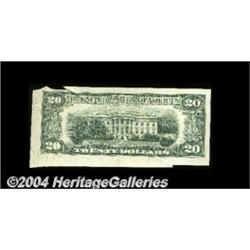 Fr. 2076-A $20 1988A Federal Reserve Note. Extremely Fine. A major error where multiple gutter folds are evident, with the note both miscut and elongated as a result. This is as dramatic as these errors come. <BR><BR><B>Important notice:</B> Heritage usually auctions material at the rate of 200-250 lots per hour. On some occasions eBay Live bid software or the Internet may not be able to keep up with the pace of the auction. We recommend placing a realistic absentee bid now as insurance to avoid disappointment. Occasionally the auctioneer may eliminate or reject an eBay Live bid, and the auctioneer may also reopen a lot after the close of the eBay live bidding (usually because we missed an audience bid), and may reject your bid even if it shows you as the winning bidder. By bidding via eBay Live, you agree that Heritage may award the lot to another bidder at its sole discretion under the circumstances described above or any other reasonable circumstances. Since eBay bids are not shown to us until we open the lot on the floor, we treat those bids just like floor bids. In most cases the floor responds before the eBay bid is presented to us, due to Internet lag time, so for consistency we have made it a policy that floor bids are always considered first over tie eBay live bids. Also please note that all Heritage lots purchased through eBay Live carry a 20% Buyer's Premium. Please make sure you read the Terms and Conditions before you bid. <BR><BR><B>IMPORTANT ANNOUNCEMENT ABOUT RESERVES:</B> Heritage now divulges all reserves on its web site 7 days before every auction. If you want to know whether the reserve on this lot has been met, and if not, what the reserve amount is, please visit this lot page on the HeritageCoin.com web site, or email: bid@HeritageGalleries.com