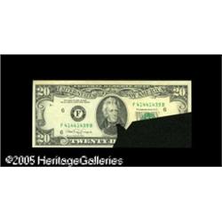 <B>Fr. 2076-F $20 1988A Federal Reserve Note. Extremely Fine.</B></I><BR>This Fed $20 represents a complex combination error of both the foldover and printed tear types. Parts of both sides are printed on the other and there are also multiple blank areas. This one needs to be studied to be appreciated, as it would need a dozen different photos to do it justice. Lot:15292