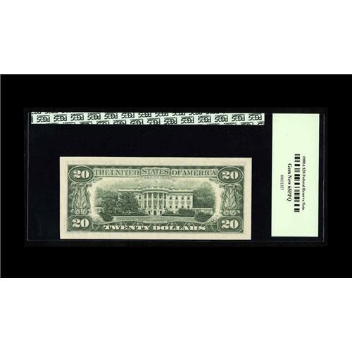<B>Fr. 2076-G $20 1988A Federal Reserve Note. PCGS Gem New 65PPQ.</B></I><BR>We not only have one serial # 1 twenty, we are proud to offer three in this sale. This example off Chicago is the last issue before the advent of the security devices. No collection would be complete without an example of this type.<BR><I>From the Scottsdale Collection</B></I>