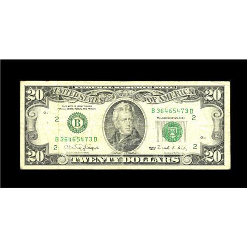 Fr. 2077-B $20 1990 Federal Reserve Note. Fine.The usua