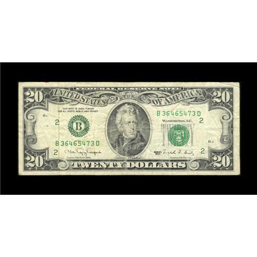 Fr. 2077-B $20 1990 Federal Reserve Note. Fine.The usua