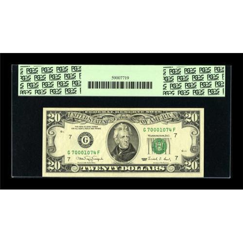 Fr. 2077-B $20 1990 Federal Reserve Note. PCGS