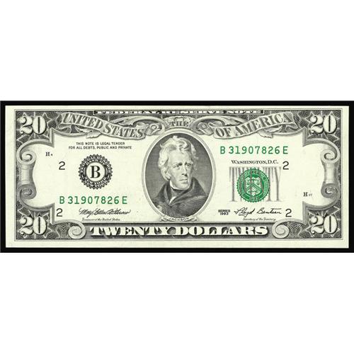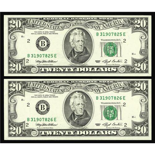 Fr. 2079-B $20 1993 Federal Reserve Notes. Two Consecut Fr. 2079-B $20 1993 Federal Reserve Notes. T