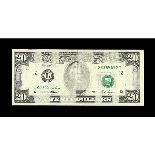Fr. 2080-L $20 1993 Federal Reserve Note. Very Fine+.Th