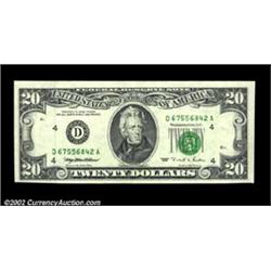 Fr. 2081-D $20 1995 Federal Reserve Note. Extremely Fine. A lightly circulated blank reverse example. Important notice: We expect to be auctioning lots at the rate of 200-250 per hour. Sometimes eBay Premier live bid software cannot keep up with that pace, so we strongly recommend that you place a realistic proxy bid now as insurance to avoid disappointment. Also please note that all Heritage/CAA lots purchased through eBay Premier carry a 20% Buyer's Premium. Please make sure you read the Terms and Conditions.