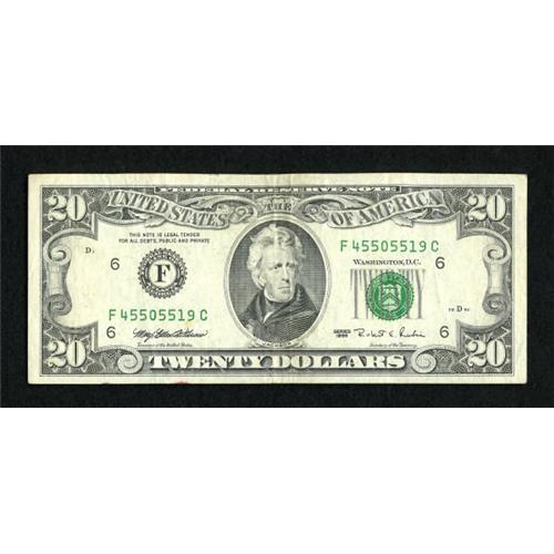 Fr. 2082-F $20 1995 Federal Reserve Note. Very