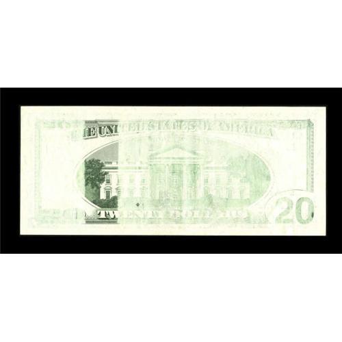 <B>Fr. 2083-B $20 1996 Federal Reserve Note. Choice About Uncirculated.</B></I><BR> An underinked plate has left us with this neat error that shows full inking on a sliver of the back.<BR><BR><b>Shipping:</b> Coins & Currency (<a target="_blank" href="http://www.heritageauctions.com/common/shipping.php">view shipping information</a>)