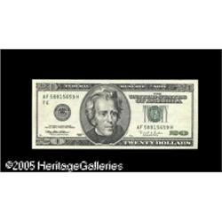 <B>Fr. 2083-F $20 1996 Inverted Reverse Federal Reserve Note About Uncirculated.</B></I> An attractive "New Twenty" invert with minimal signs of circulation. Lot:15065
