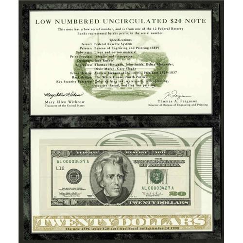 <B>Fr. 2084-L $20 1996 Federal Reserve Notes. Ten Examples. Gem Crisp Uncirculated.</B></I><BR>All of these Department of the Treasury packaged notes sport serial numbers that begin with four zeros.