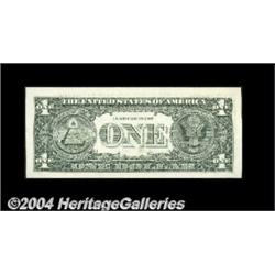 Fr. 2085-A $1 1999 Federal Reserve Note. Gem Crisp Uncirculated. The black impression of the Federal Reserve district number and seal are darkly overinked. <BR><BR><B>Important notice:</B> Heritage usually auctions material at the rate of 200-250 lots per hour. On some occasions eBay Live bid software or the Internet may not be able to keep up with the pace of the auction. We recommend placing a realistic absentee bid now as insurance to avoid disappointment. Occasionally the auctioneer may eliminate or reject an eBay Live bid, and the auctioneer may also reopen a lot after the close of the eBay live bidding (usually because we missed an audience bid), and may reject your bid even if it shows you as the winning bidder. By bidding via eBay Live, you agree that Heritage may award the lot to another bidder at its sole discretion under the circumstances described above or any other reasonable circumstances. Since eBay bids are not shown to us until we open the lot on the floor, we treat those bids just like floor bids. In most cases the floor responds before the eBay bid is presented to us, due to Internet lag time, so for consistency we have made it a policy that floor bids are always considered first over tie eBay live bids. Also please note that all Heritage lots purchased through eBay Live carry a 20% Buyer's Premium. Please make sure you read the Terms and Conditions before you bid. <BR><BR><B>IMPORTANT ANNOUNCEMENT ABOUT RESERVES:</B> Heritage now divulges all reserves on its web site 7 days before every auction. If you want to know whether the reserve on this lot has been met, and if not, what the reserve amount is, please visit this lot page on the HeritageCoin.com web site, or email: bid@HeritageGalleries.com