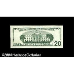 Fr. 2087-B $20 2001 Federal Reserve Note. Gem Crisp U <B>Fr. 2087-B $20 2001 Federal Reserve Note. Gem Crisp Uncirculated.</B></I><BR>This lovely note bears serial number CB00000008A. <BR><BR><B>Important notice:</B> Heritage usually auctions material at the rate of 200-250 lots per hour. On some occasions eBay Live bid software or the Internet may not be able to keep up with the pace of the auction. We recommend placing a realistic absentee bid now as insurance to avoid disappointment. Occasionally the auctioneer may eliminate or reject an eBay Live bid, and the auctioneer may also reopen a lot after the close of the eBay live bidding (usually because we missed an audience bid), and may reject your bid even if it shows you as the winning bidder. By bidding via eBay Live, you agree that Heritage may award the lot to another bidder at its sole discretion under the circumstances described above or any other reasonable circumstances. Since eBay bids are not shown to us until we open the lot on the floor, we treat those bids just like floor bids. In most cases the floor responds before the eBay bid is presented to us, due to Internet lag time, so for consistency we have made it a policy that floor bids are always considered first over tie eBay live bids. Also please note that all Heritage lots purchased through eBay Live carry a 20% Buyer's Premium. Please make sure you read the Terms and Conditions before you bid. This lot is being auctioned in conjunction with a live floor auction by Heritage Galleries & Auctioneers. All final auction and invoice information will be supplied by Heritage Galleries & Auctioneers, and all other information should be considered preliminary. Lot:16399