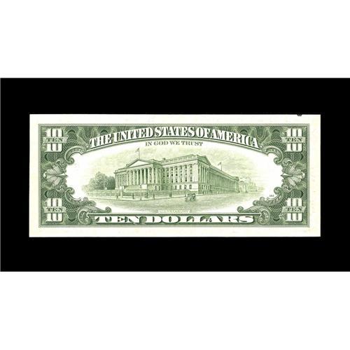 <B>Fr. 20xx-F $10 19xx Federal Reserve Note. About Uncirculated.</B></I><BR>The entire second print was missed on this Atlanta district note. Some light handling wrinkles transect the bright surfaces.