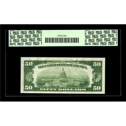 <B>Fr. 2100-A $50 1928 Federal Reserve Note. PCGS Gem New 65PPQ.</B></I><BR>This certainly is one of the keys to completing a set of notes for all districts within the series. Our offerings in the past five years number only ten with this bright example being one of the nicest. Throw the price guides away on this one.<BR><BR><b>Shipping:</b> Coins & Currency (<a target="_blank" href="http://www.heritageauctions.com/common/shipping.php">view shipping information</a>)