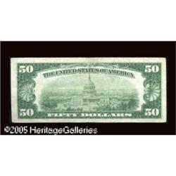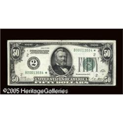 <B>Fr. 2100-B* $50 1928 Federal Reserve Note. Very Fine.</B></I><BR>New York and Chicago are the two most common districts for stars in this series, making this a perfect type example. There is a small tear at the top which extends slightly into the design. Lot:16189